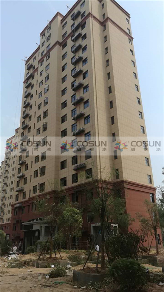 超前涂料 CCTV黃金展位合作伙伴河南鄭州楊金路新科技市場旁邊北徐莊安置房工地面積7萬平方,為了追求高端住宅的需要,能從視覺上彰顯整個建筑的高雅與莊重之美,甲方在經(jīng)過嚴格考察篩選后,超前涂料順利入圍。項目中指定超前真石漆做為外墻專用漆。