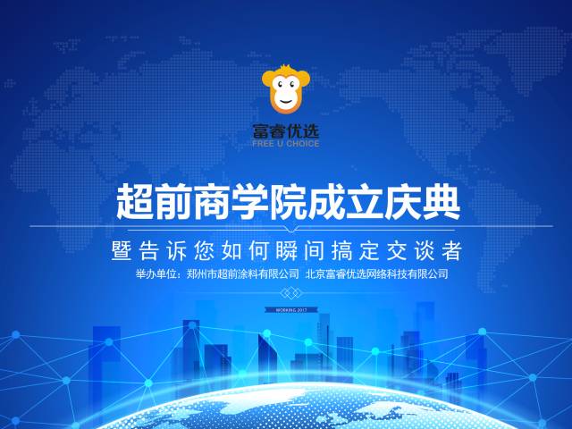 2017年04月19日,超前商學(xué)院成立揭牌啟動大會在鄭州隆重召開,鄭州市超前涂料董事長、北京富睿優(yōu)選選董事長—閻運鋒,人社部高級人力資源管理師、WFA國際促動師協(xié)會行動學(xué)促動師—代志杰,中國智慧策略應(yīng)用專家、企業(yè)運營管理專家、飛漲策略(北京)品牌管理有限公司董事長—董建明等50多位企業(yè)家與公司員工出席本次活動。