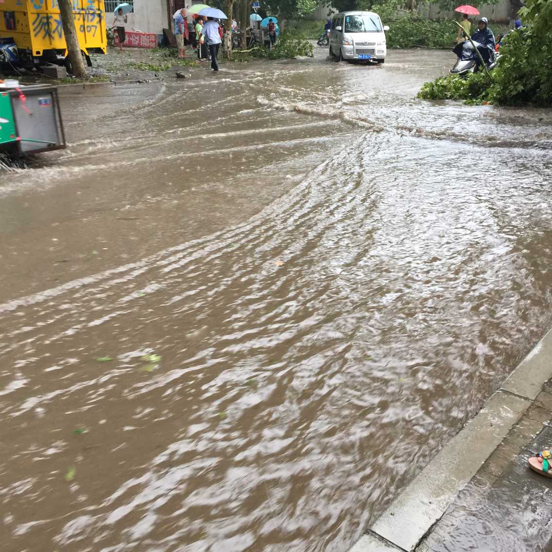 廠外路上積水成河
